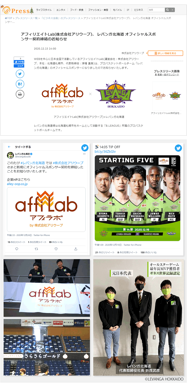 アフィリエイトLab(株式会社アリウープ)は北海道札幌市に拠点を置くプロバスケットボールチーム「レバンガ北海道」様とスポンサー契約を結び、オフィシャルスポンサーとしての活動も行っています。